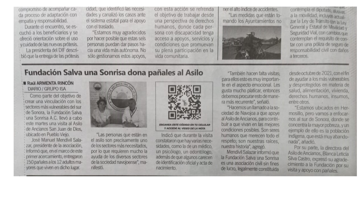 Entrega de pañales al Asilo del Adulto Mayor "San Juan de Dios" Cuento Contigo IAP , Pueblo Viejo, Navojoa Sonora